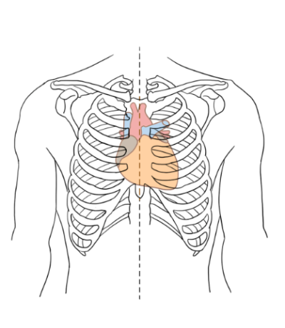 - 이 위치는 심장이 안정적으로 고정되어 있으며, 가슴의 움직임에 따라 충격을 흡수하면서도 정확한 기능을 수행할 수 있도록 보호되어 있습니다.