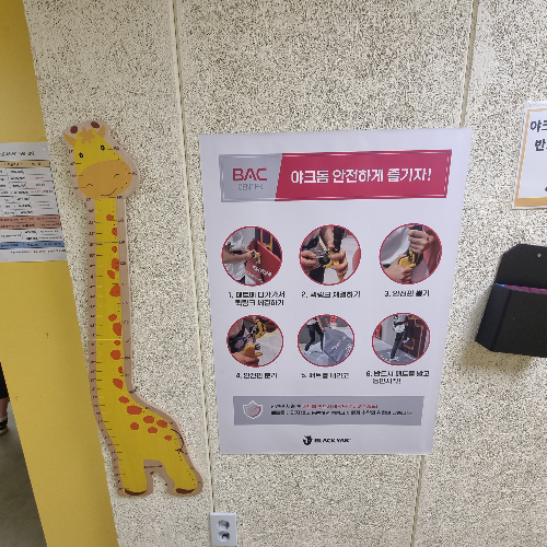 110ccm 이상이라 키재기도 준비되어 있어요.