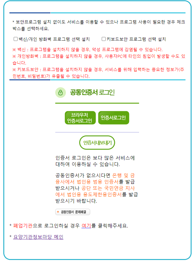 <요양기관 정보마당 홈페이지>