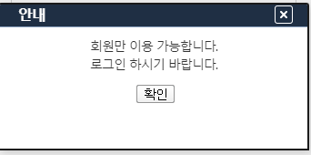 회원만 이용가능합니다. 로그인 하시기바랍니다. 안내문이 나옵니다.