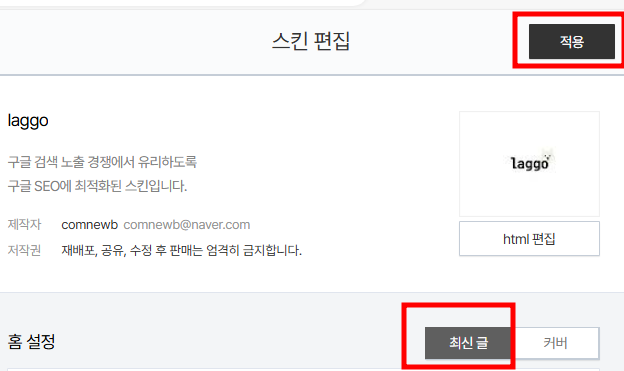 다시 티스토리 스킨 편집에 가서html편집을 클릭해주세요.
