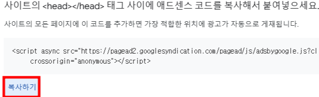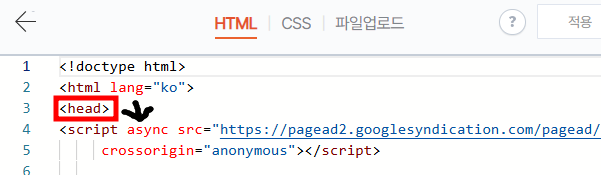 저는 <head> 아래에 애드센스 광고 코드가 들어있지 않았어요.