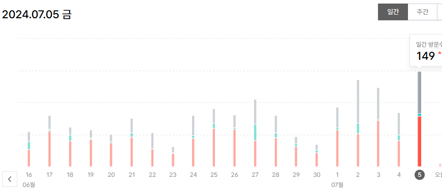 7/5 149명이 유입 기록 / 페이지뷰는 64로 집계