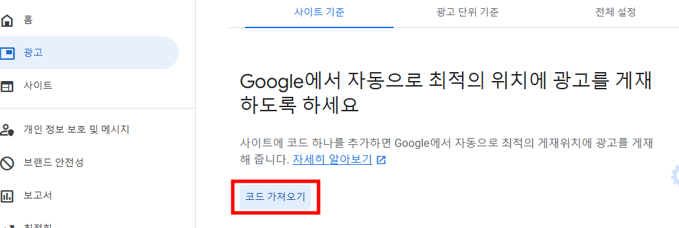 이유를 찾았으니까 애드광고 코드를 넣어서 페이지 오류 5초만에 해결해 보겠습니다.