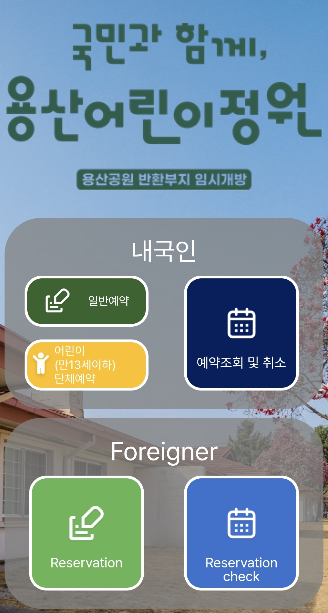 국민과 함께, 용산어린이정원 예약