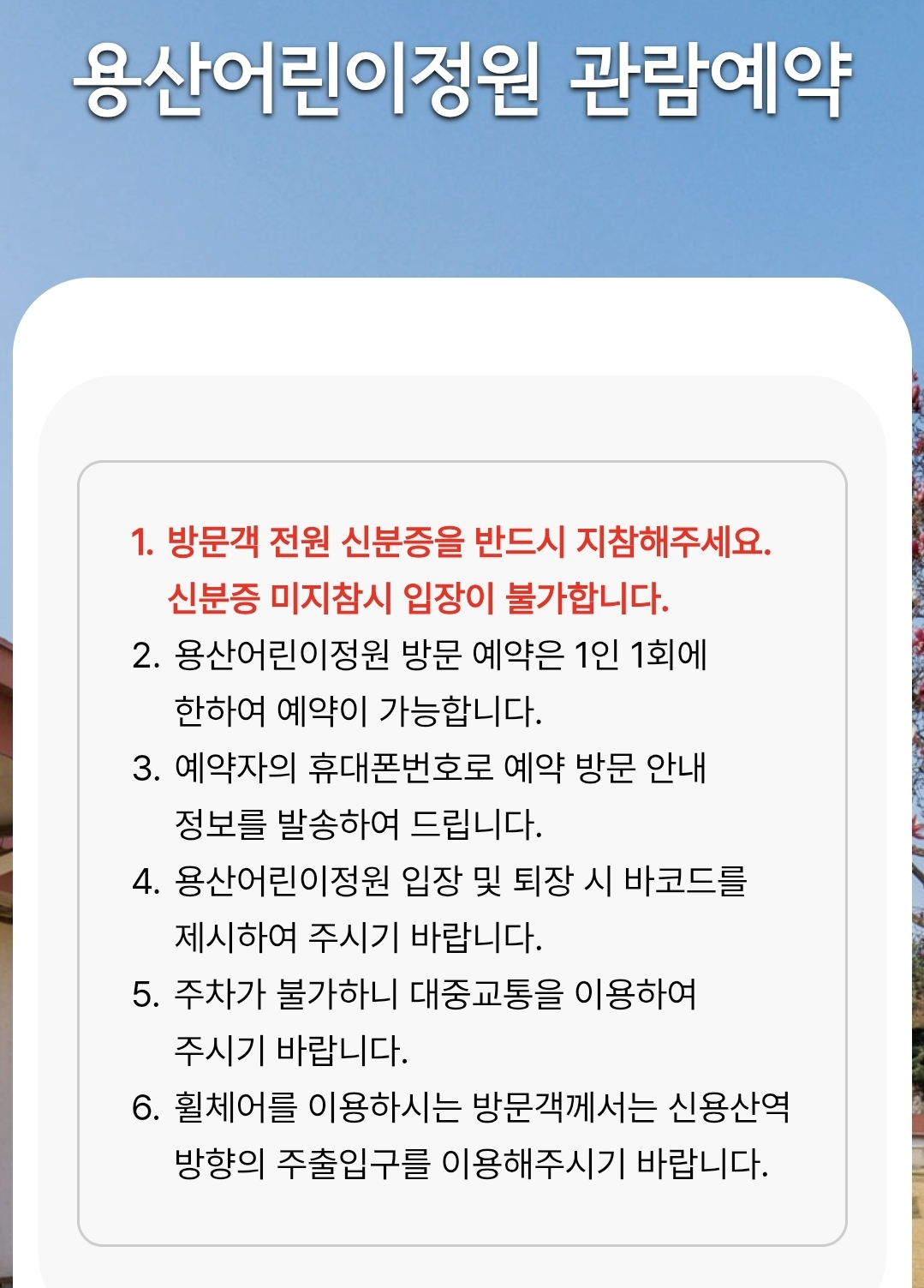 용산어린이정원 관람예약 안내