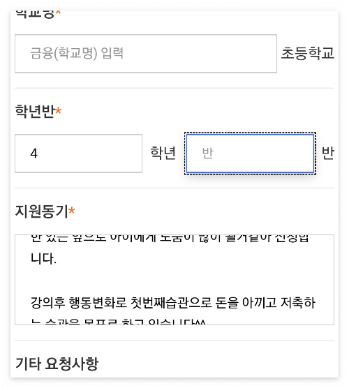 학생 학교와 학년 반 등을 입력해서