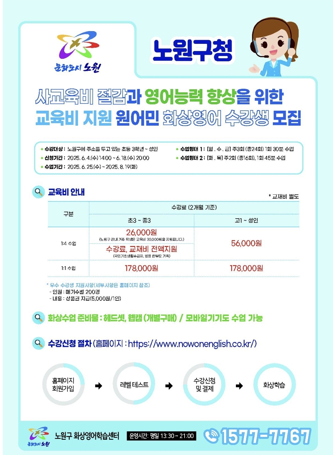2025 노원 이앤오즈 온라인 원어민화상영어, 수강료, 신청방법 총정리