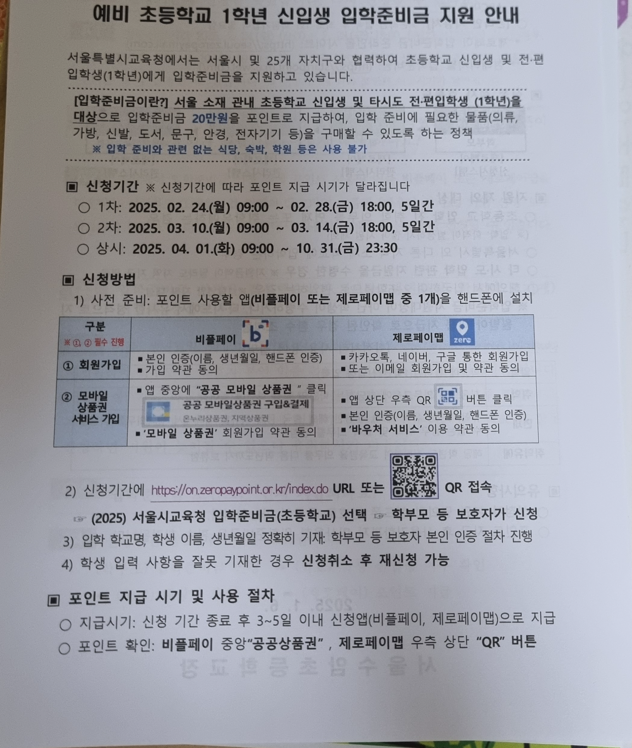 2025 서울 초등 입학준비금 , 신청기간, 신청방법, 포인트 지급시기, 사용처