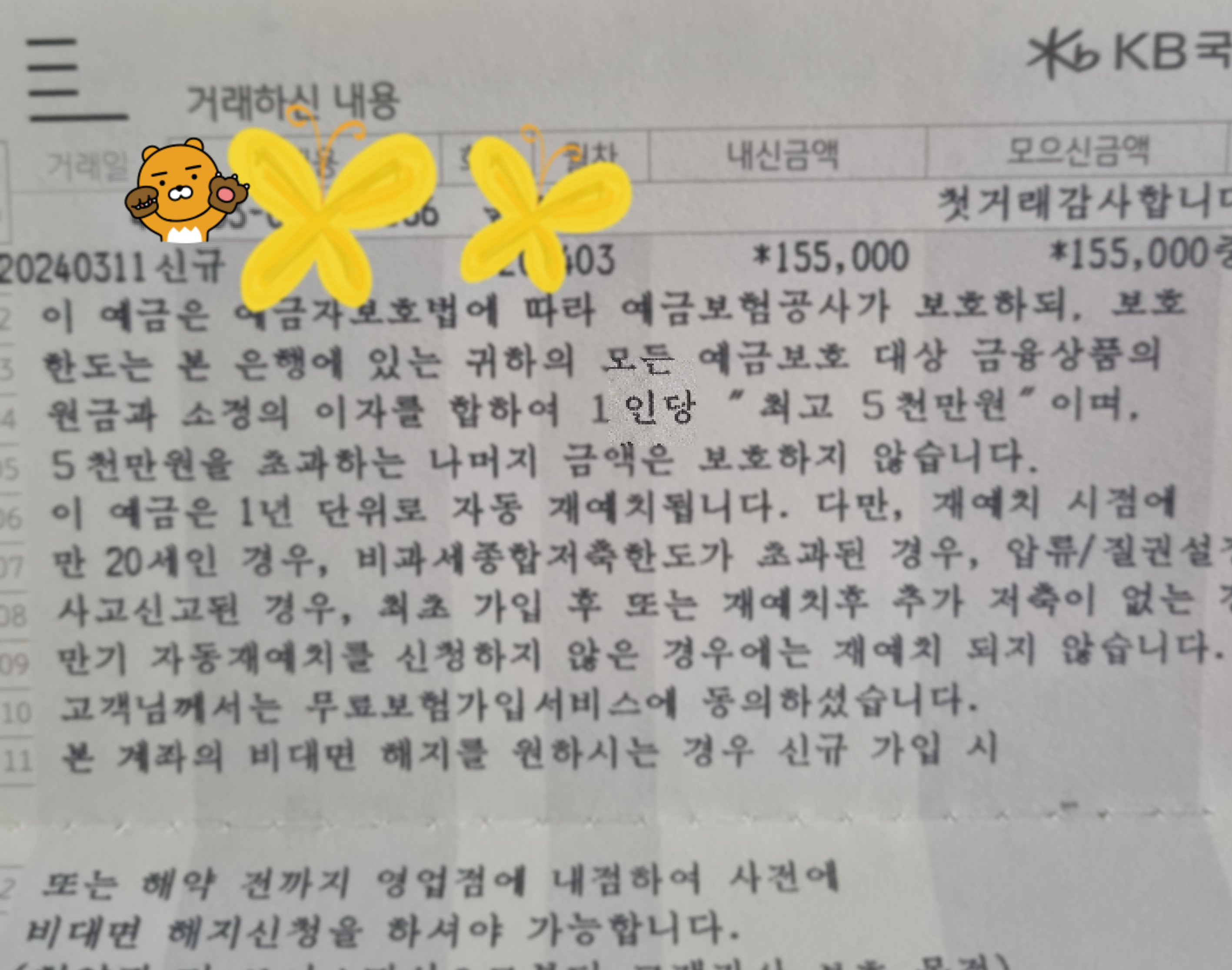 오늘 국민은행에서 우리 아이 이름으로 발급받은 적금은