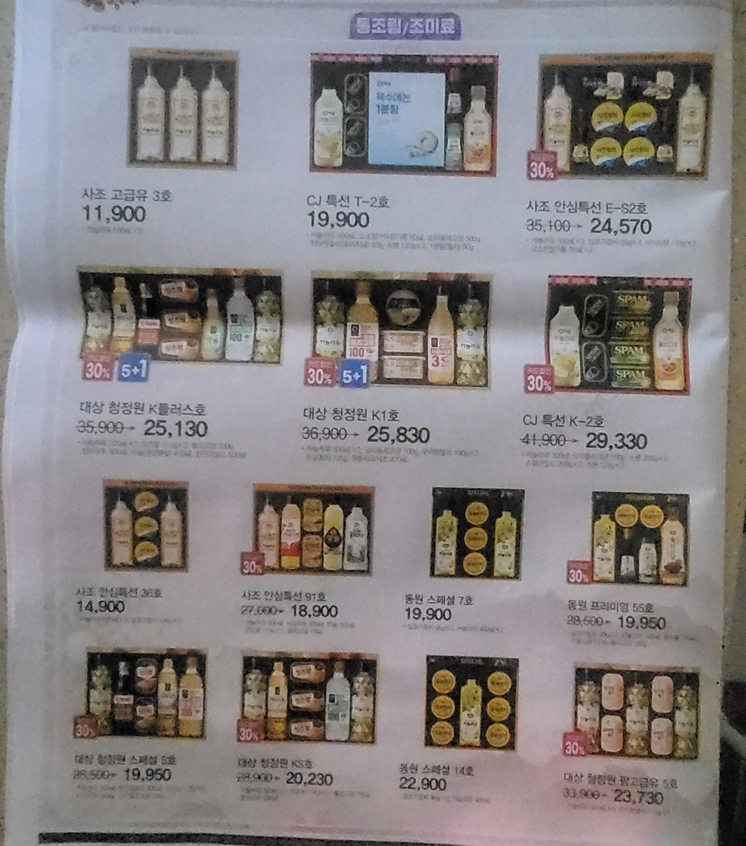 통조림/조미료 선물세트 가격안내