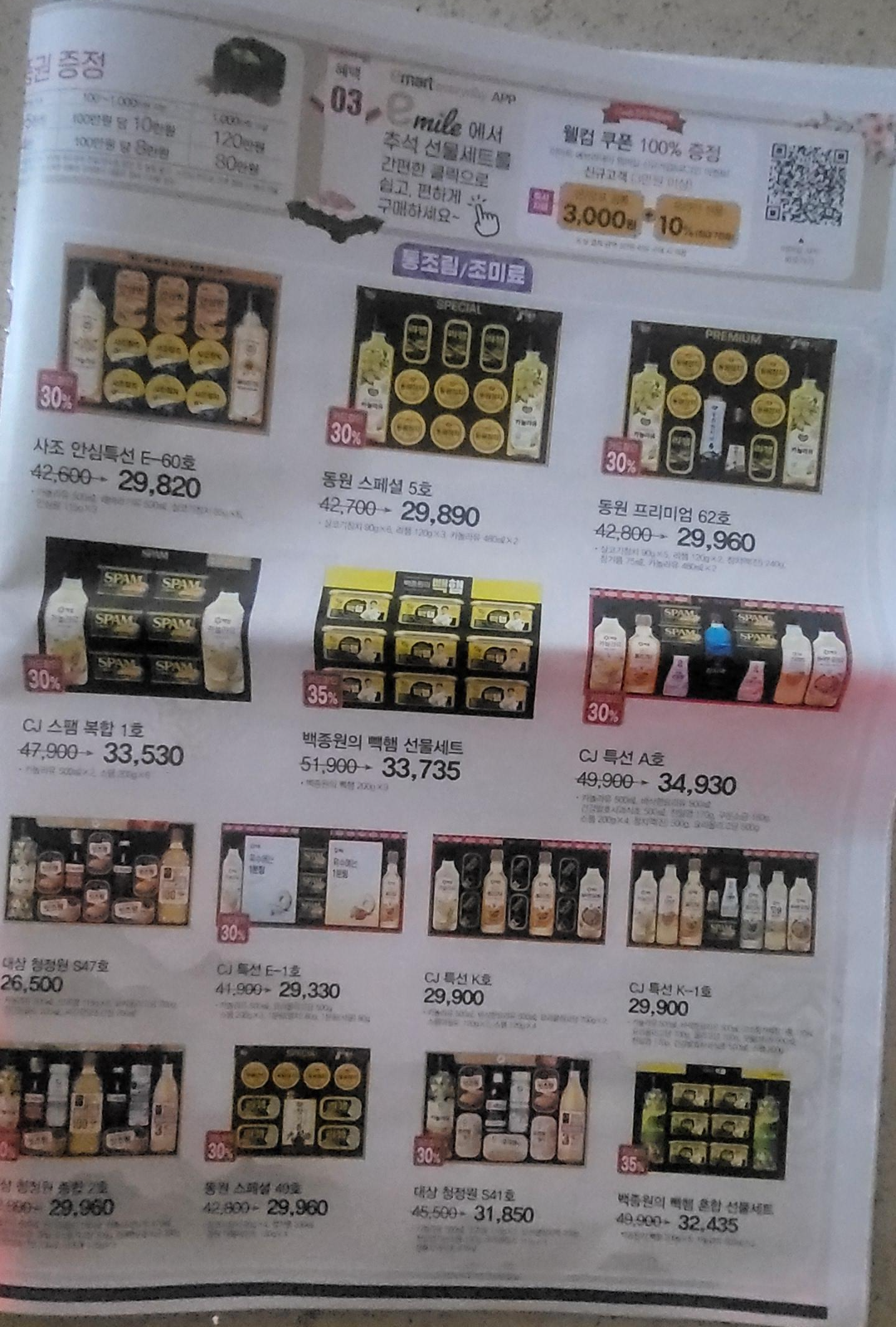 이마트에브리데이 전단지에 안내되어 있는 추석선물세트 상품들을 안내해 드릴께요.