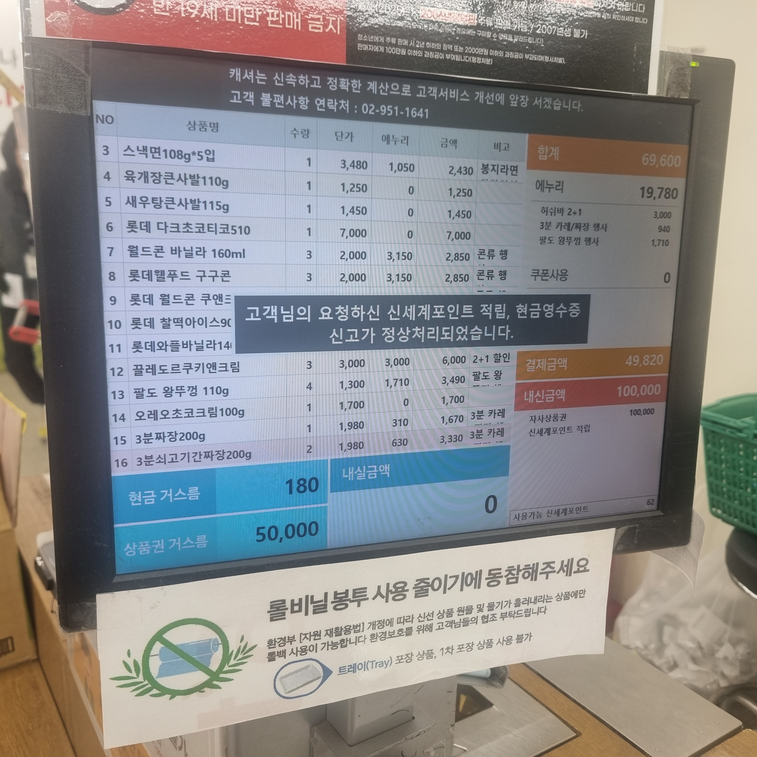 저희는 아이스크림 행사, 봉지라면 행사(3개구매시 30%할인), 3분카레 등 이마트 고래잇 행사 헤택받고 19,780원 할인 혜택을 받았네요