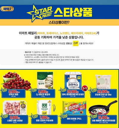 이마트 패밀리 위크가 진행되고 있는데요.7/5일~7/7일까지 3일간 신선 및 가공식품, 일상생활 용품등을 최대 반값에 판매한다고 해서 집에서 가까운 에브데이 중계동점을 다녀왔어요. 에브리데
