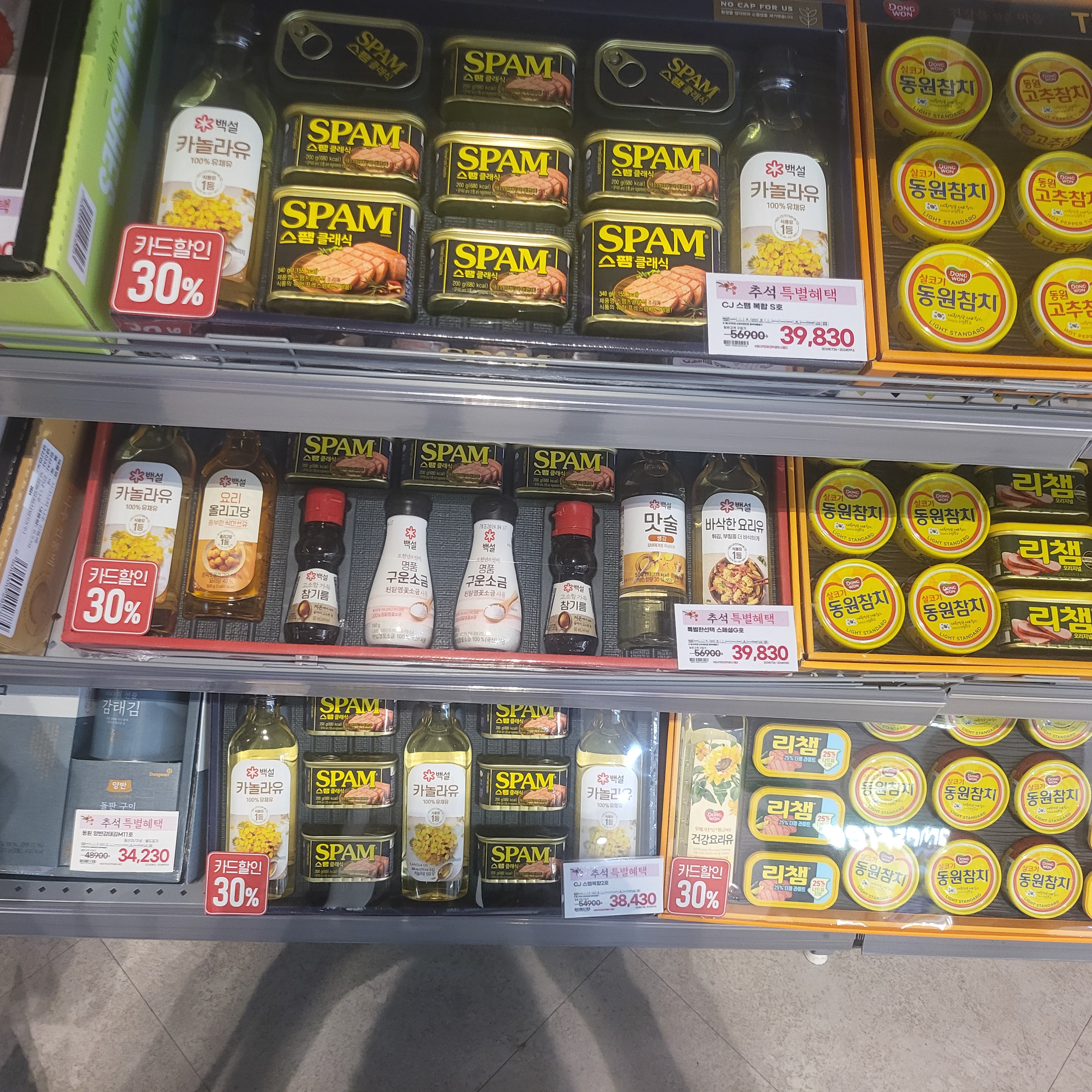대표적으로 조미료, 통조림 세트가 인기고 신선식품에서는 축산 선물세트도 가장 인기라고 합니다.