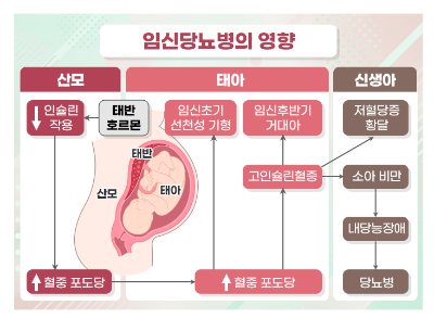 산모의 고혈당이 태아의 발달과 성장에 영향을 주게 되어서 합병증이 증가됩니다.