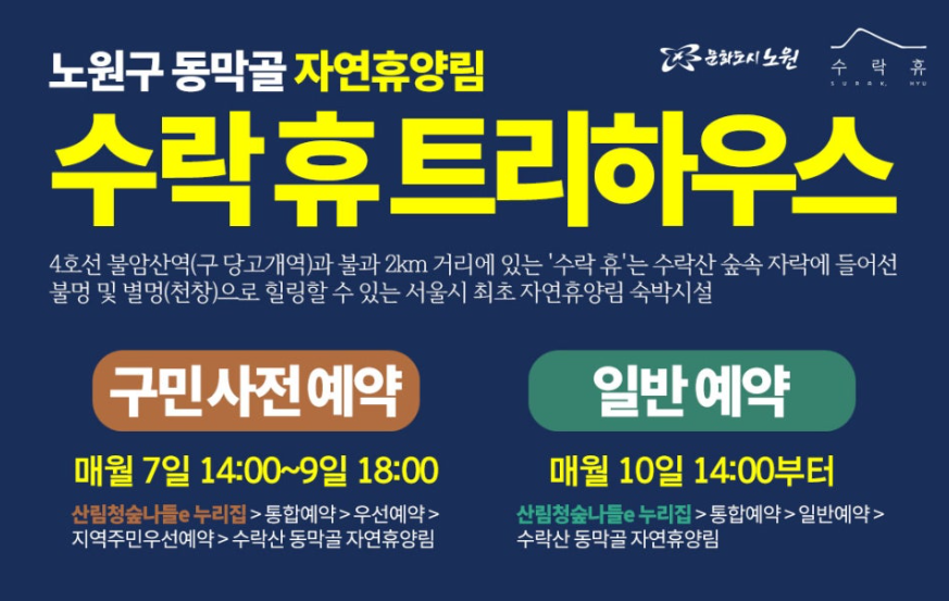 서울 최초 수락산 동막골 자연휴양림 수락 휴 7월 정식개장, 사전예약, 객실시설, 이용요금