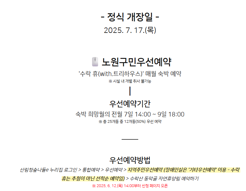 노원 자연휴얄림 수락 휴 7월 정식 개장안내