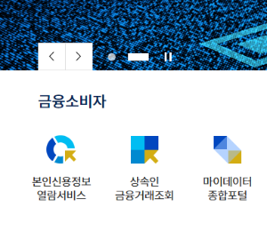 아래의 본인신용정보 열람서비스 들어가시면 빠르게 조회 하실 수 있습니다.