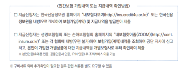 재난적의료비 제출서류, 민간보험 가입내역 또는 지급내역 확인 방법 안내