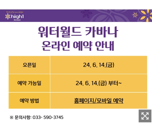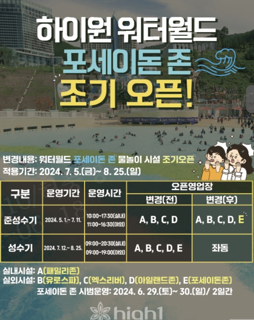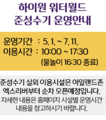 하이원 워터월드 준성수기 운영안내