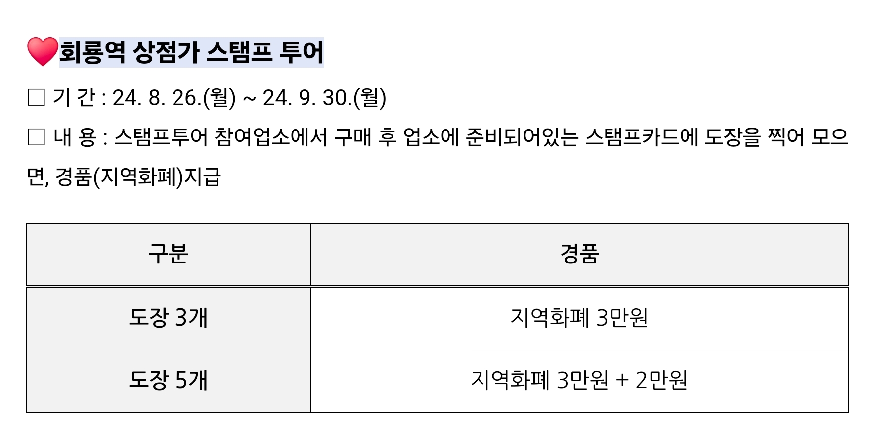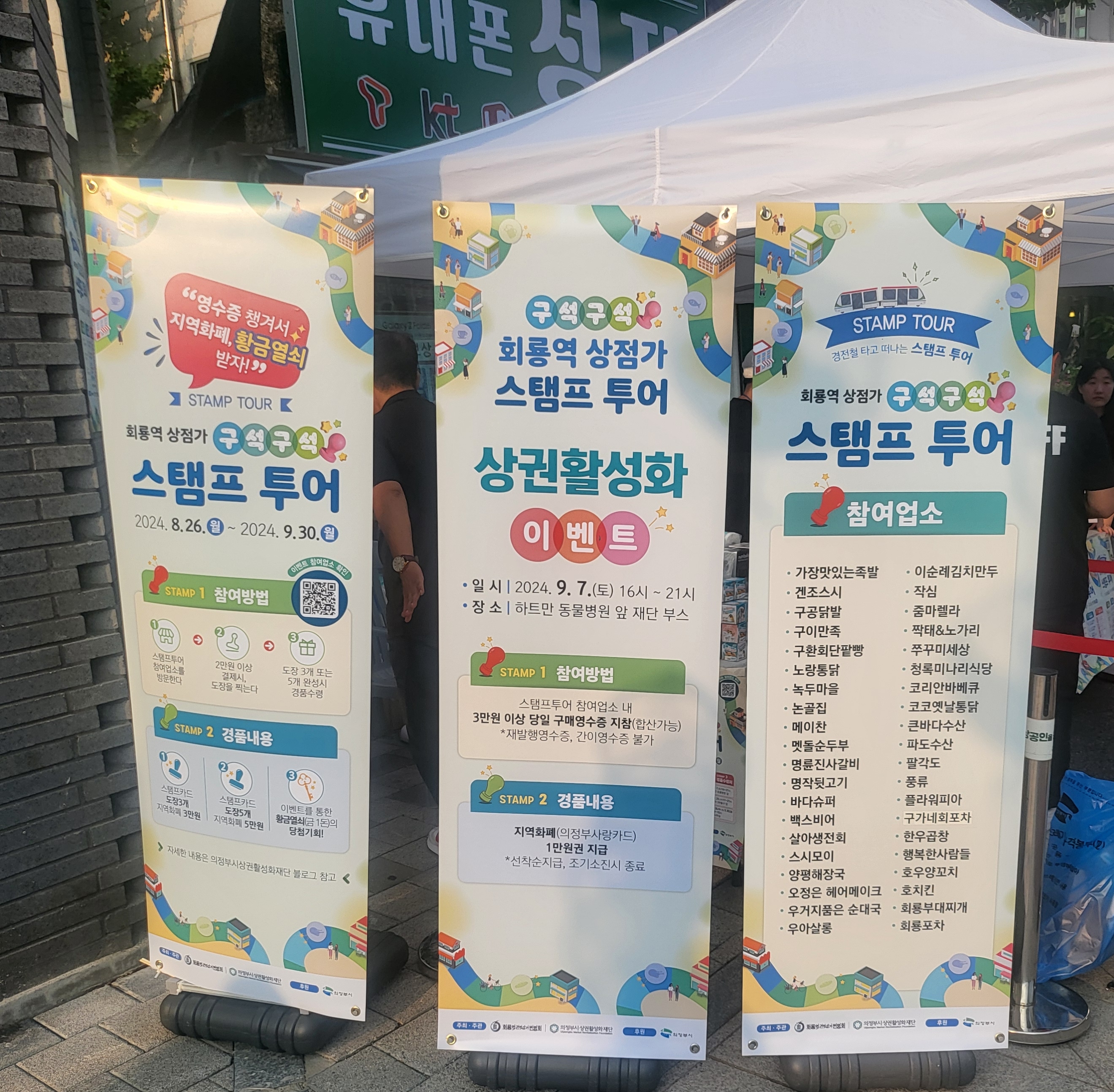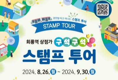 회룡역 상점가 구석구석 스템프 투어 기간은 2024. 8.26(월)~ 24. 9.30(월) 입니다.