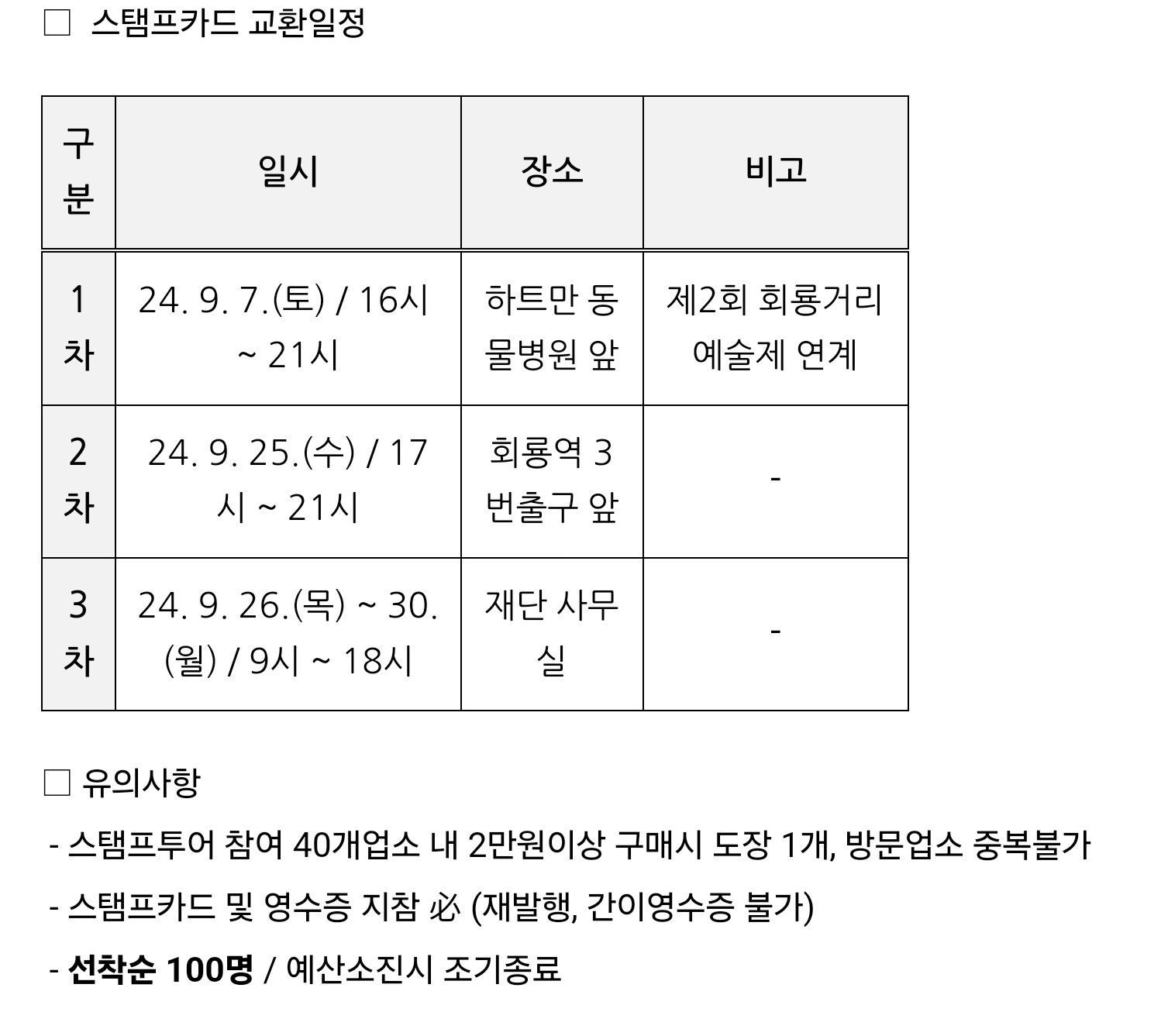 스템프 카드 및 영수증 지참이 필요하고 재발행, 간이영수증을 인정이 안되니깐 영수증은 꼭 챙겨주세요.