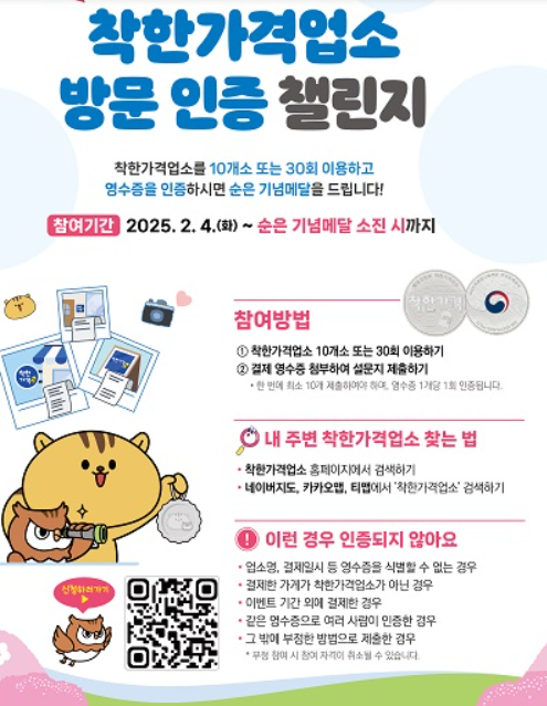 착한가격업소 찾아보시고 방문 인증 챌린지에 참여하셔셔 선착순 순은 기념메달도 꼭 받아가시구요~