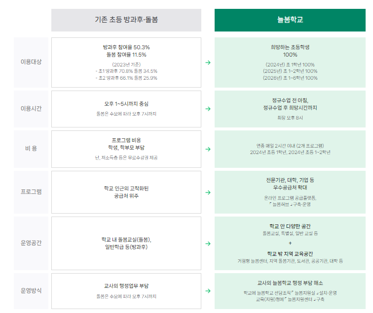 늘봄학교, 돌봄교실에 대해 비교해 보고 살명을 드리고자 합니다.