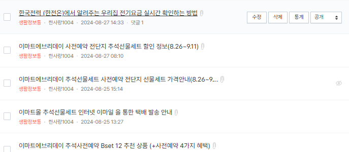 저는 초보 블로그라서 하나씩 강의도 듣고 알아가면서 적용해 보고 있어요.
