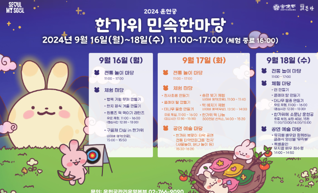 4. 2024운현궁 한가위 민속한마당 9/16(월)~9/18(수) 11:00~17:00