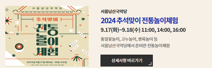5. 2024 추석맞이 전통놀이체험 9/17(일)~9/18(화) 11:00, 14:00, 16:00