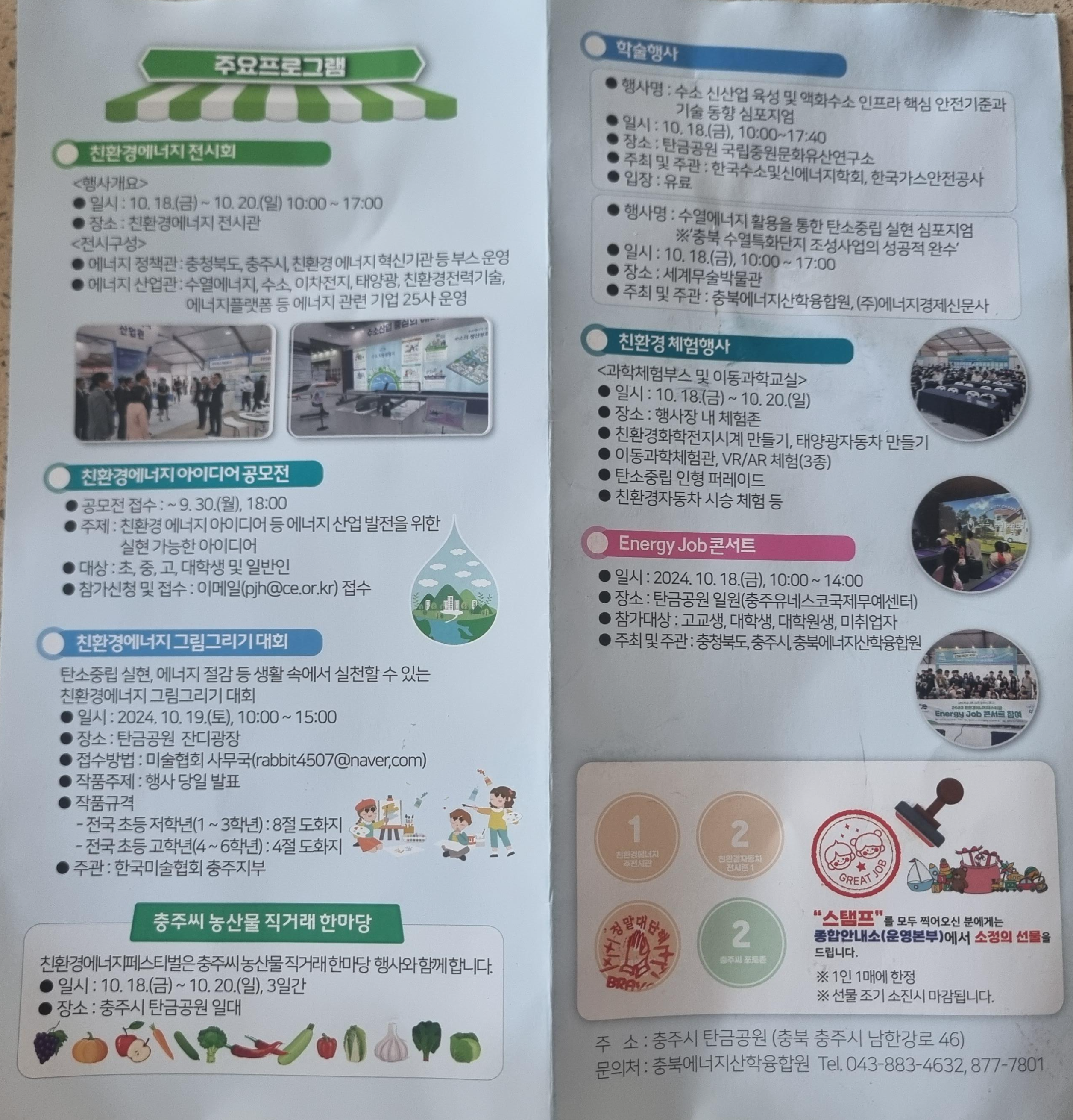 충주씨 농산물 직거래 한마당 연계 행사로 2024 친환경 에너지 페스벌 행사가 진행되는데요.