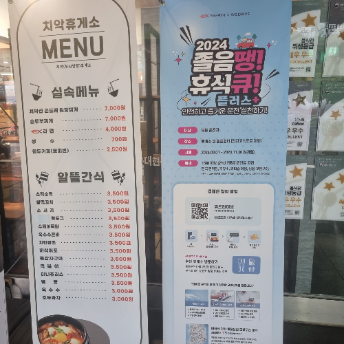 강원도 정선 하이원 가는 길 치악 휴게소, 실속메뉴, 알뜰간식 메뉴, 24졸음땡 휴식큐
