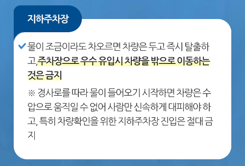 장마철 침수대비 행동요령 I 지하 주택, 지하상가, 지하주차장 침수피해 대피방법