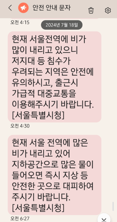 - 집앞 빗물받이 덮개 제거 및 쓰레기 반출을 자제합니다