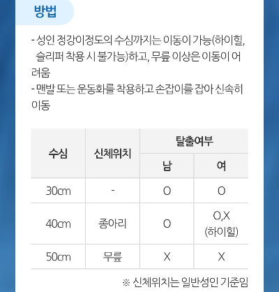맨발 또는 운동화를 착용하고 손잡이를 잡아신속하게 대피합니다.