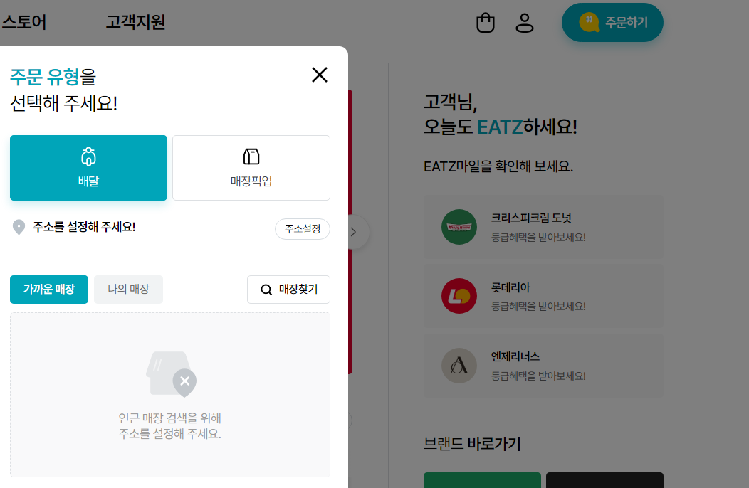 홈페이지에 들어가서 주문하기 클릭하면