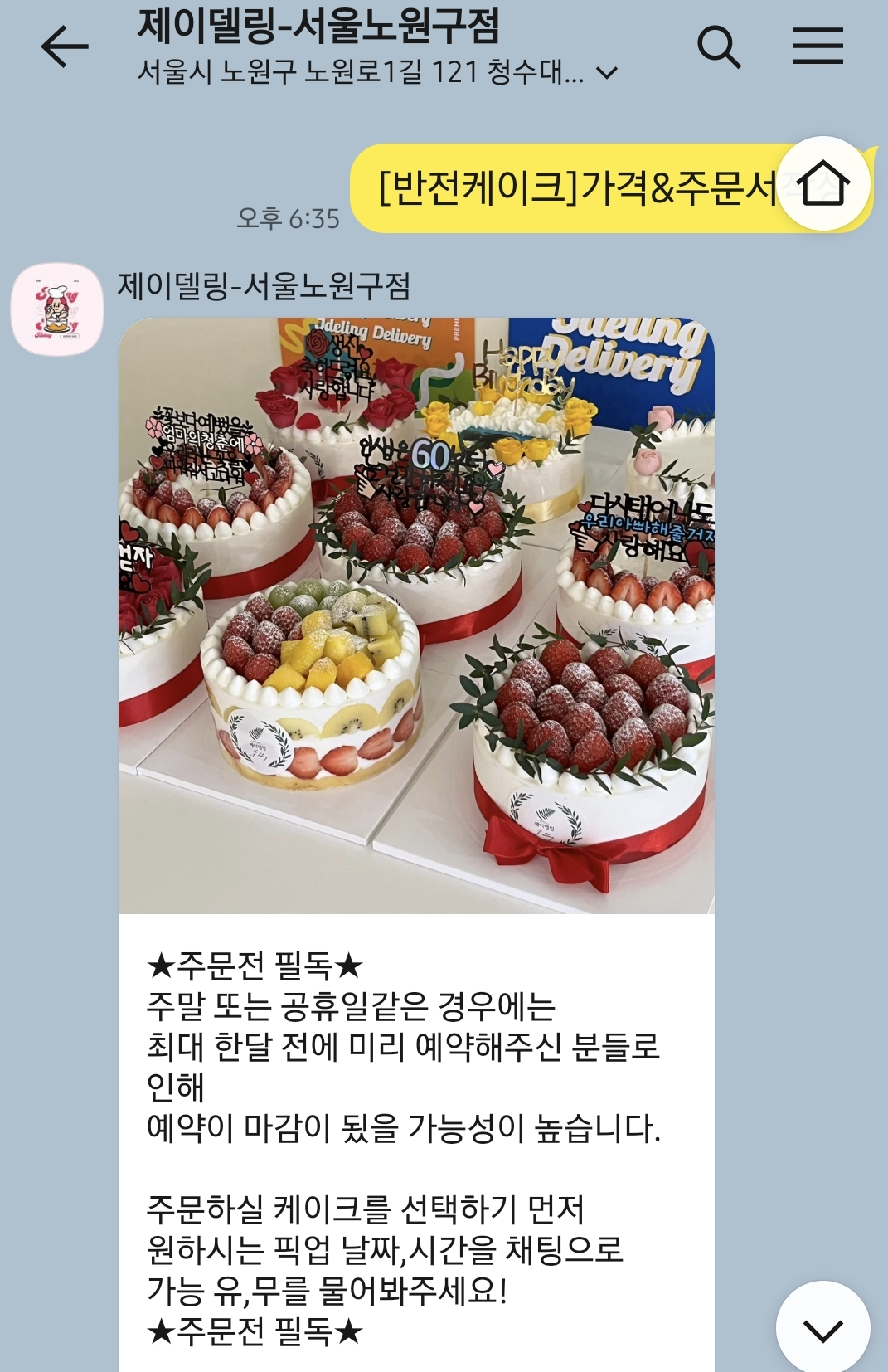 특별한 날 특별한 케잌 시어머님 생일이벤트 맞춤 수제케이크 제이델링 서울노원구점 리뷰