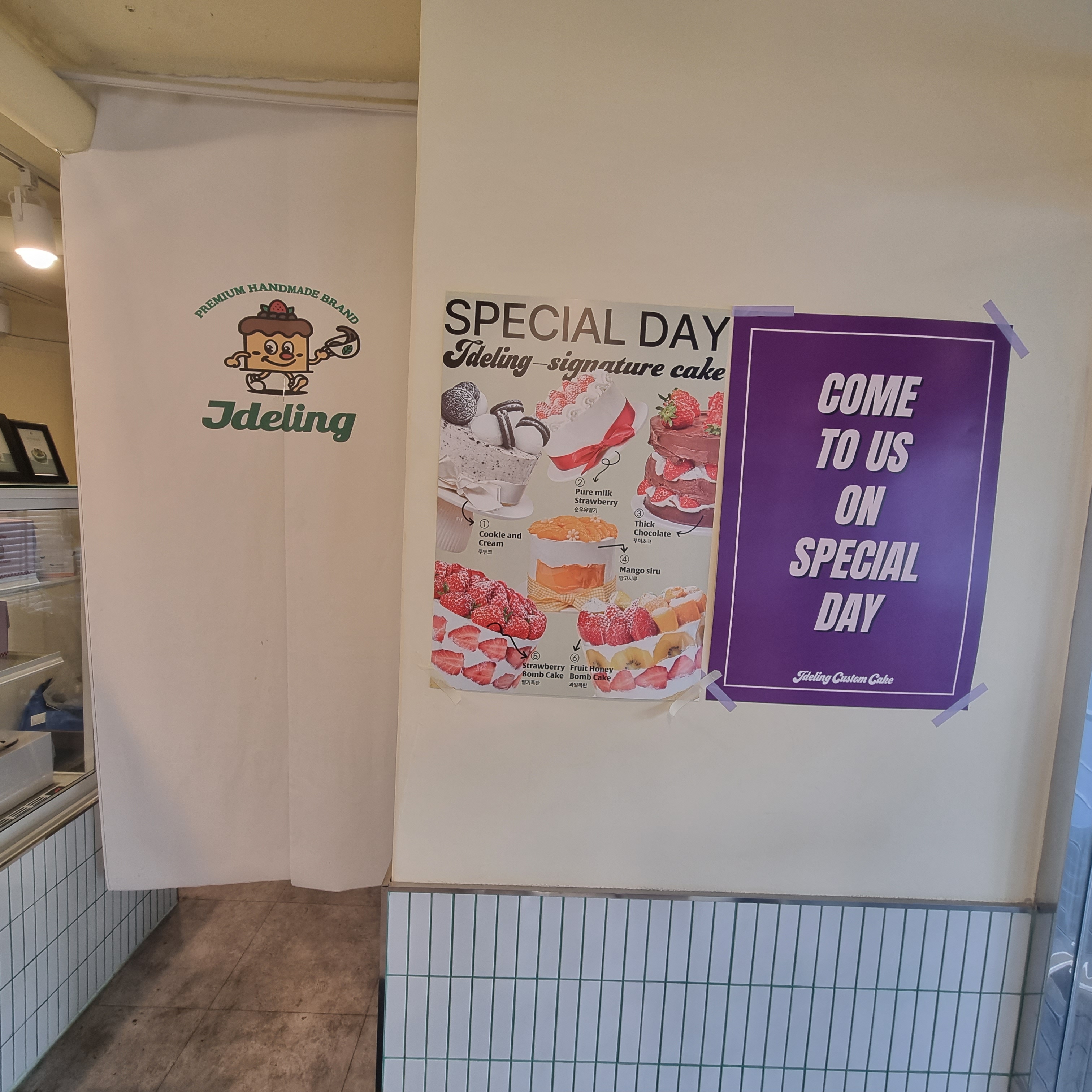 입구에 다양한 종류의 케잌들 보이시죠?