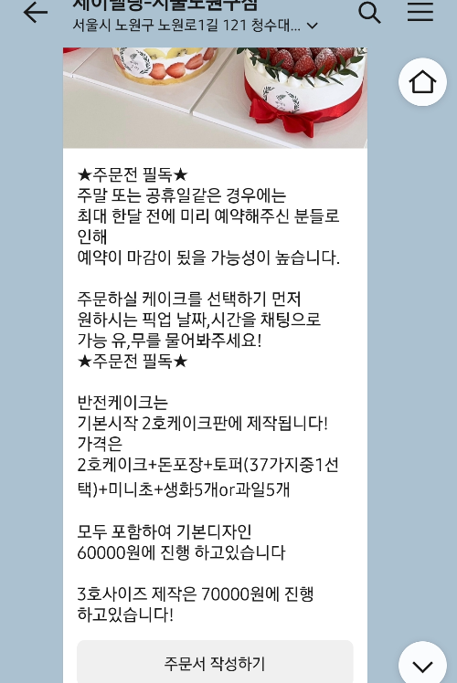 특별한 날 특별한 케잌 시어머님 생일이벤트 맞춤 수제케이크 제이델링 서울노원구점 리뷰