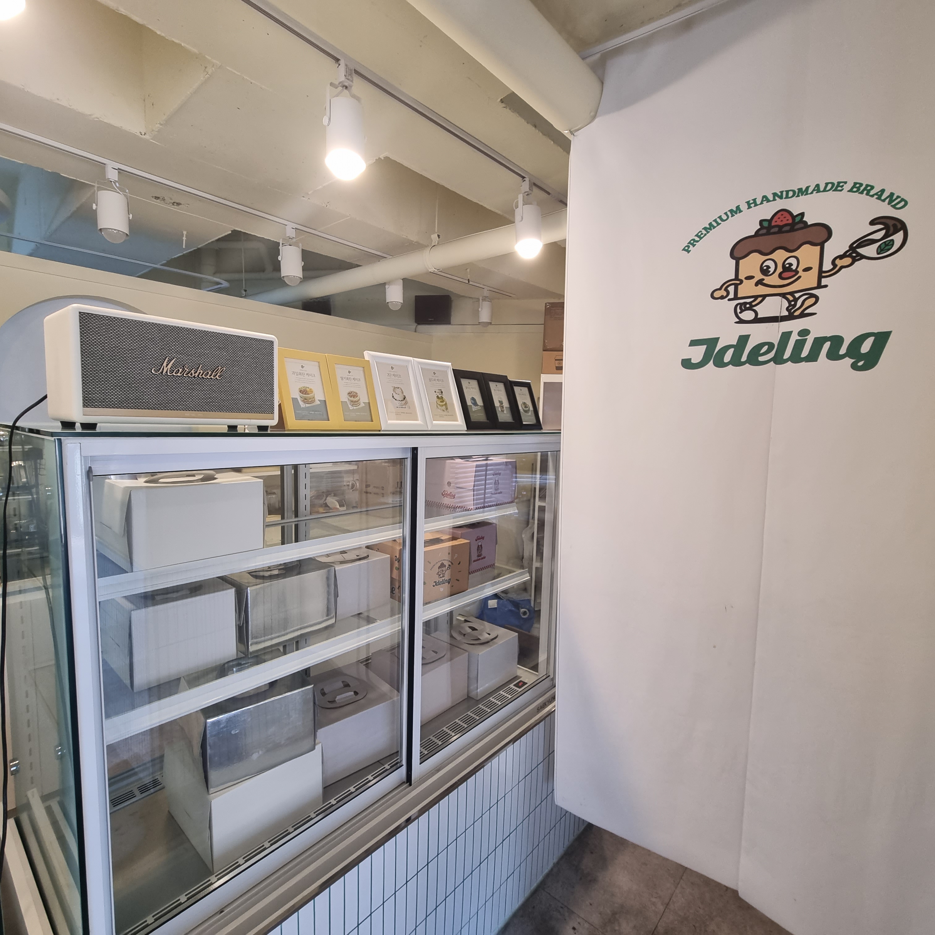 입구에 다양한 종류의 케잌들 보이시죠?