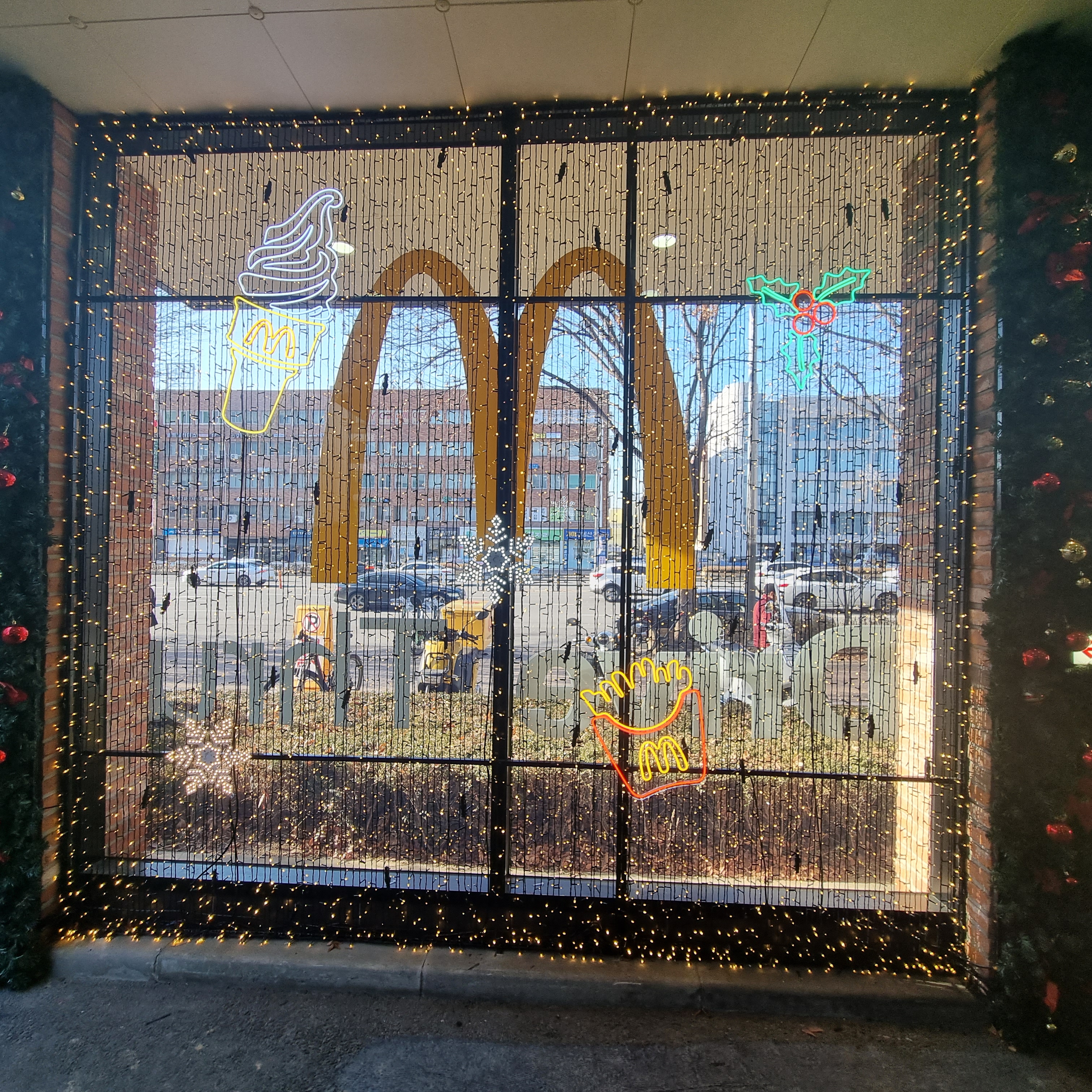 둔촌맥도날드 매장은 크리스마스 루미나리 장식으로 아름답게 꾸며져 있어서 연말 분위기를 한층 더해주며, 고객들에게 특별한 경험을 제공하고 있습니다.