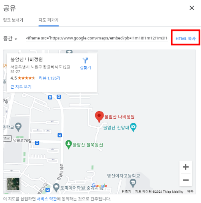 5) '지도 퍼가기'에서 HTML 복사를 눌러줍니다.
