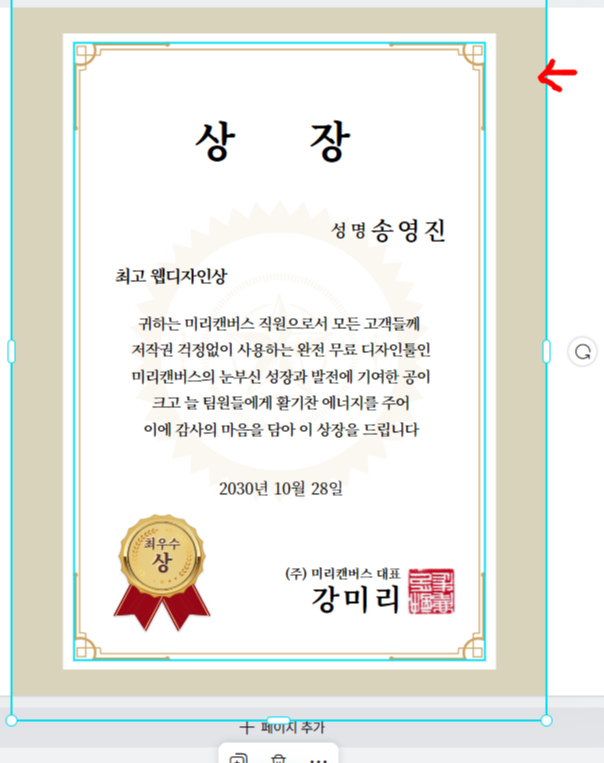 미리캔버스 나만의 표창장 만들기