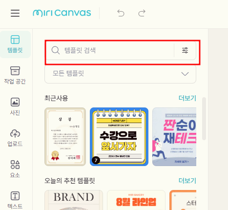 3. '템플릿 검색'이 나오는데요.