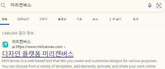 1, 검색창에서 미리캔버스라고 입력합니다.