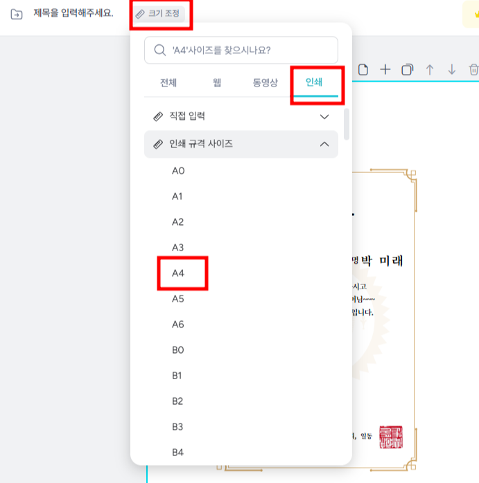 원하는 상장 이름으로 바꿔줍니다.