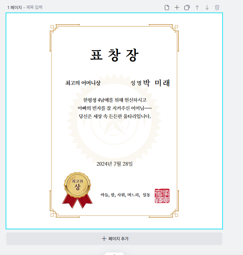 멋지게 표창장 완성해보시면 더 뿌듯하실꺼예요