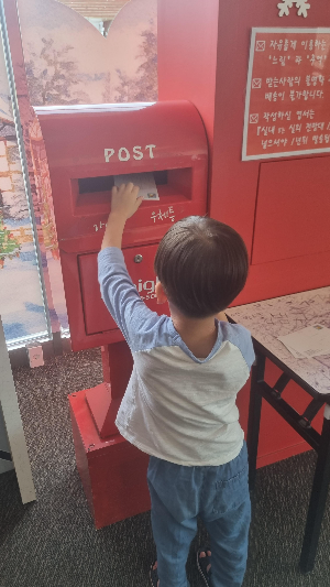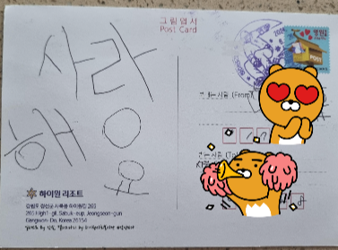 1년전에 느리게 가는 엽서에 아이와 함께 적어 우체통에 넣고 잊고 있었는데요.